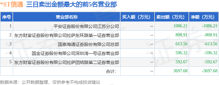 证券之星消息,沪深交易所2025年4月25日公布的交易公开信息显示,*ST信通(600289)因ST、*ST证券连续三个交易日内收盘价格跌幅偏离值累计达到12%的证券登上龙虎榜。此次是近5个交易日内第1次上榜。